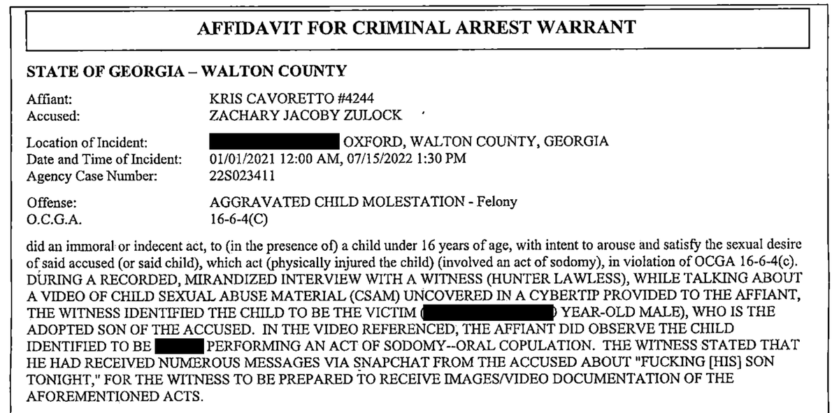 Zachary allegedly texted Lawless on Snapchat to "be prepared" to receive child porn of the father raping his child. Lawless told police Zachary invited him "multiple times" to engage in sexual acts with him and his adopted children.