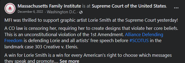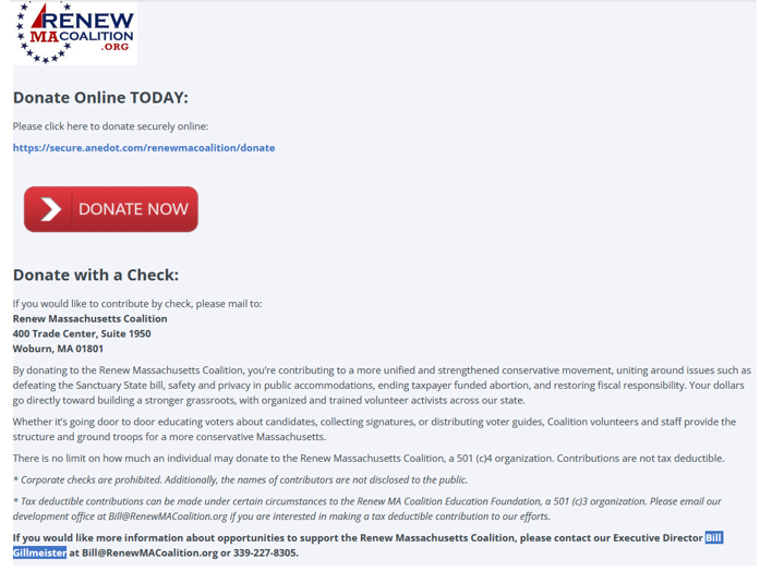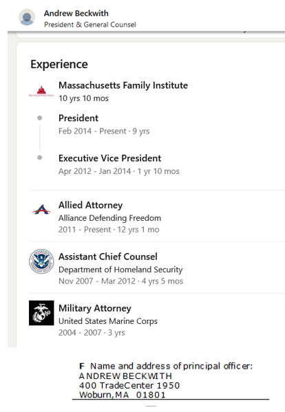 The president of Massachusetts Family Institute came from Alliance Defending Freedom. He is also director of Renew Massachusetts Coalition.