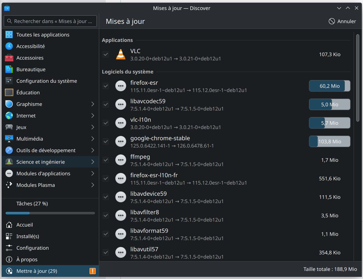 Mon PC principal vient de passer sous Debian 12 avec KDE.