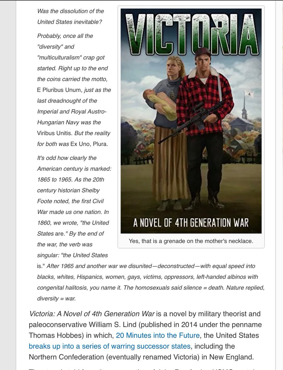 Here’s William Lind’s vision for “4th Generation Warfare” — the overthrow of the US government in a racial holy war costing millions of lives.