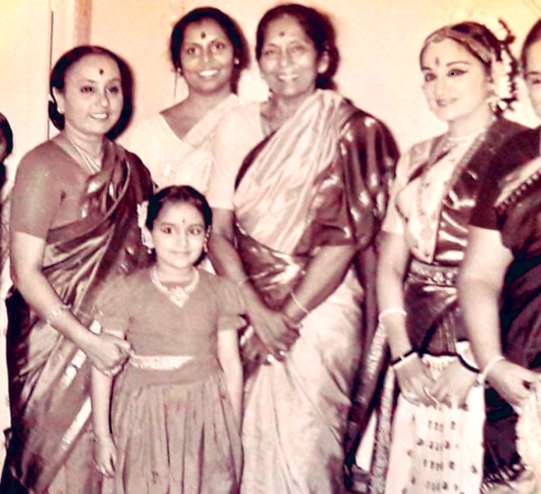 Lakshmi and her family were close to the iconic Thanjavur Balasaraswati. Though she was not a direct disciple of Balamma, Lakshmi often said her dance was inspired by Balamma’s performances. Seen here are Balamma and her daughter Lakshmi Knight with Lakshmi and her mother.