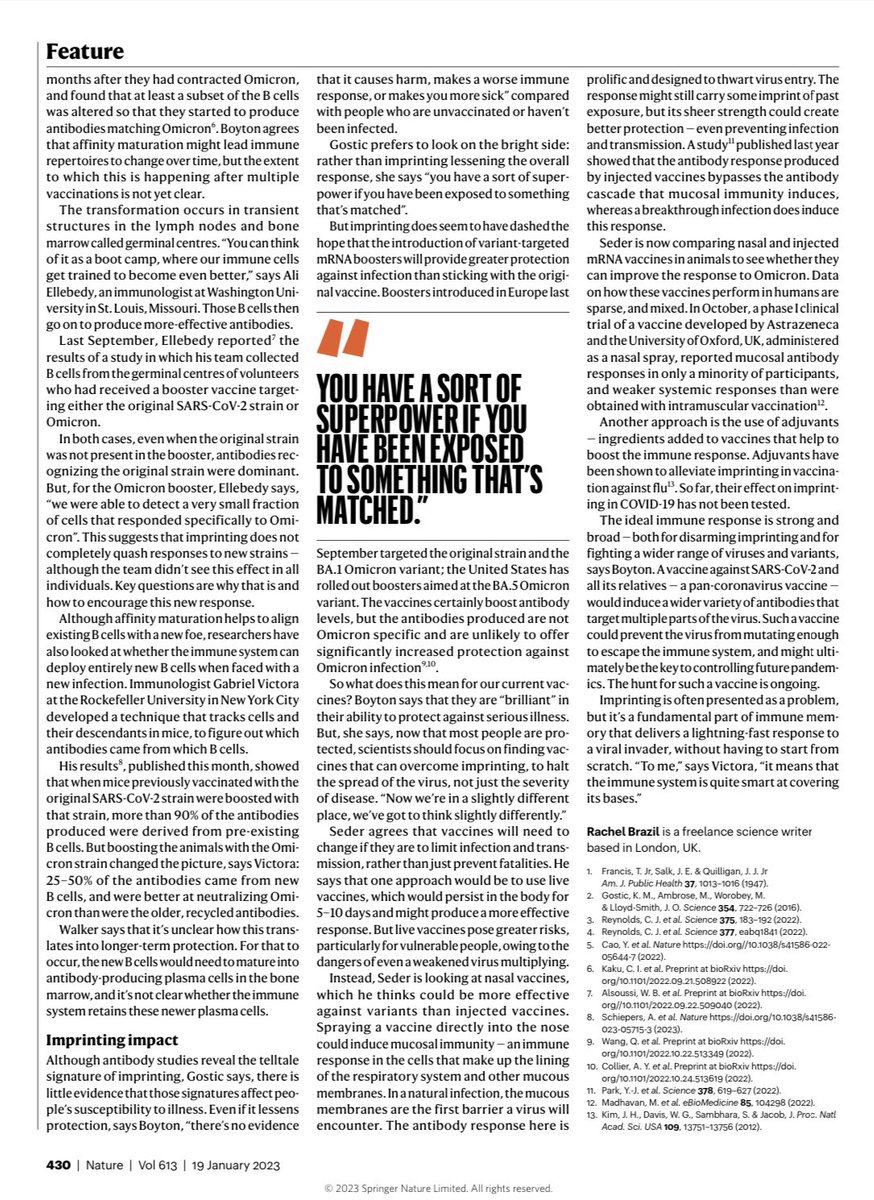 Laufe der Zeit verändern, aber es ist noch nicht klar, in welchem Ausmaß dies nach Mehrfachimpfungen geschieht. Beim Omicron-Booster konnte ein sehr kleiner Anteil von Zellen nachgewiesen werden, die spezifisch auf Omicron reagierten. Dies deutet darauf hin, dass die Prägung die