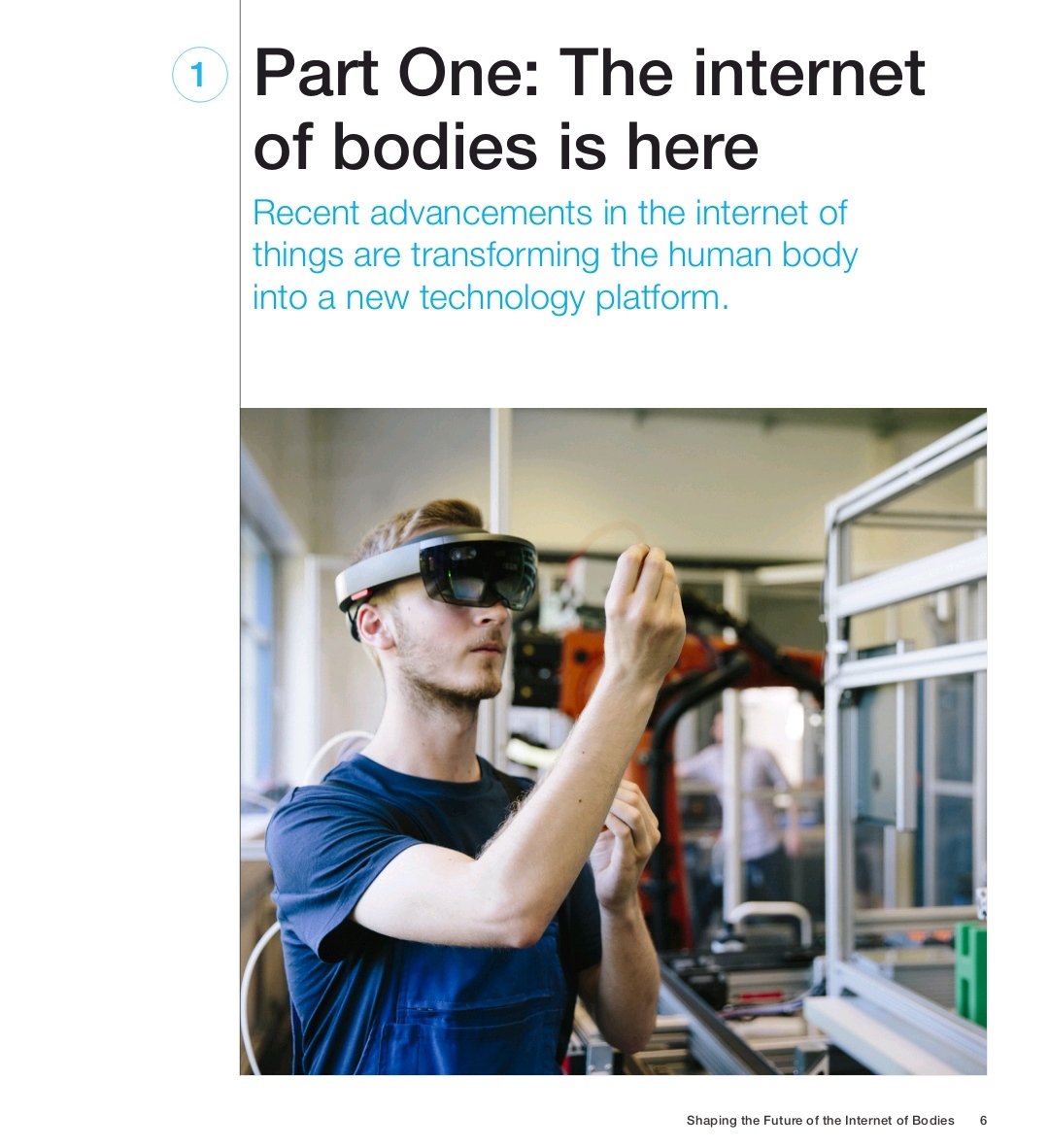 " E' giunto il momento per l'Internet dei corpi. Ciò significa raccogliere i nostri dati fisici tramite dispositivi che possono essere impiantati, ingeriti o semplicemente indossati, generando enormi quantità di informazioni relative alla salute. "