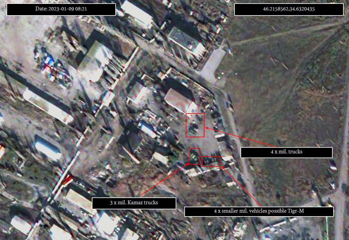 5/11 was available till the first week of Jan. However on low-res imagery, large defensive works around all of these towns could be seen. On the Hi-res imagery a large number of military trucks unloading box & fuel cars can be seen, also a number of dumptrucks can be seen