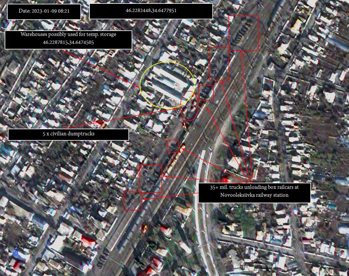 4/11 the first indications Novooleksiivka was used as railway hub were images posted by @bayraktar_1love on 16 okt. Which were geolocated to the trainstation & showed troops & trucks at the trainstation. However due to deteriorating weather conditions no sat. imagery