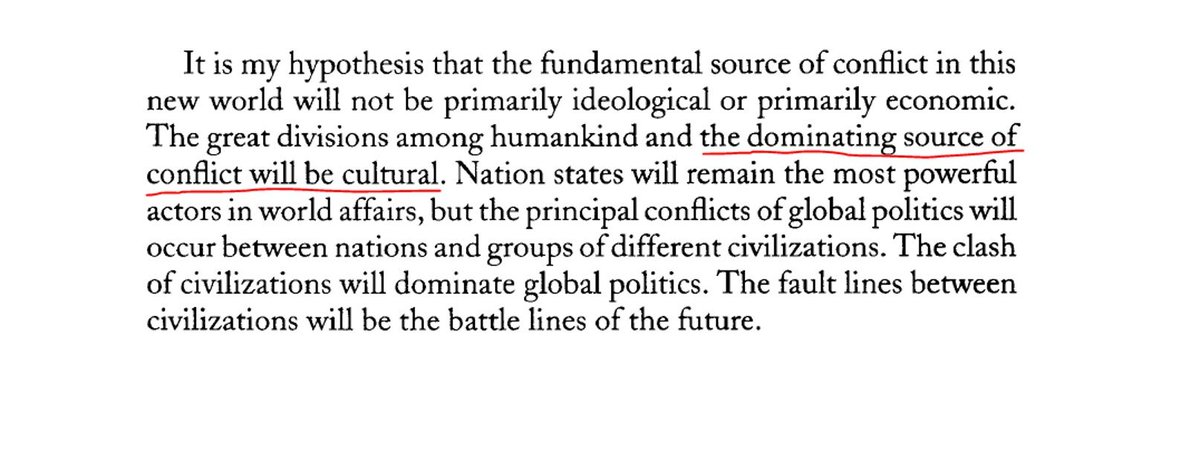 Well, we don't have to look too far to figure that out. Huntington tells us in his next book, which has a full-on anti-Latin American (specifically Mexico) immigration diatribe. amazon.com/Who-Are-We-Cha…