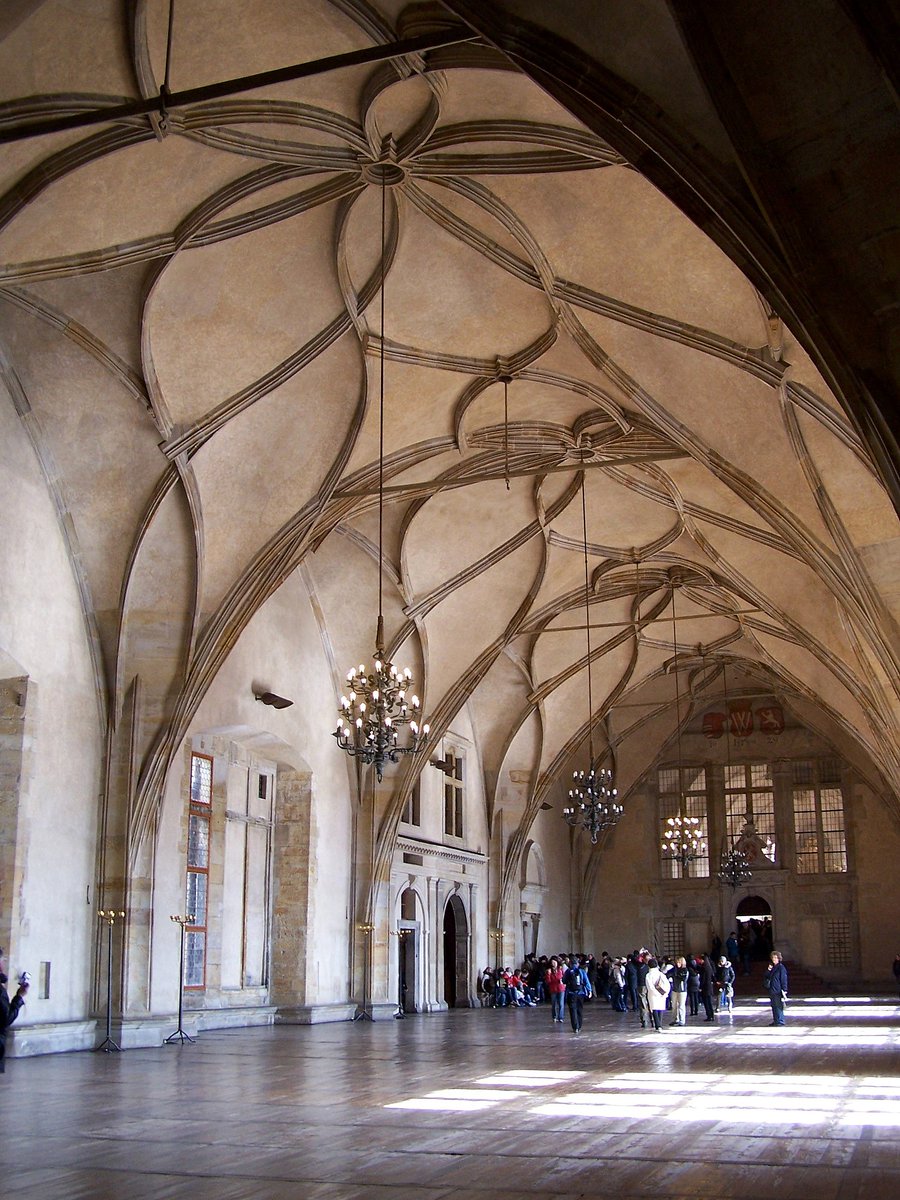 It is noteworthy for its unusual vaulting, which featured broken ribs and rather dramatic reticulation, as in Prague's majestic Vladislav Hall.