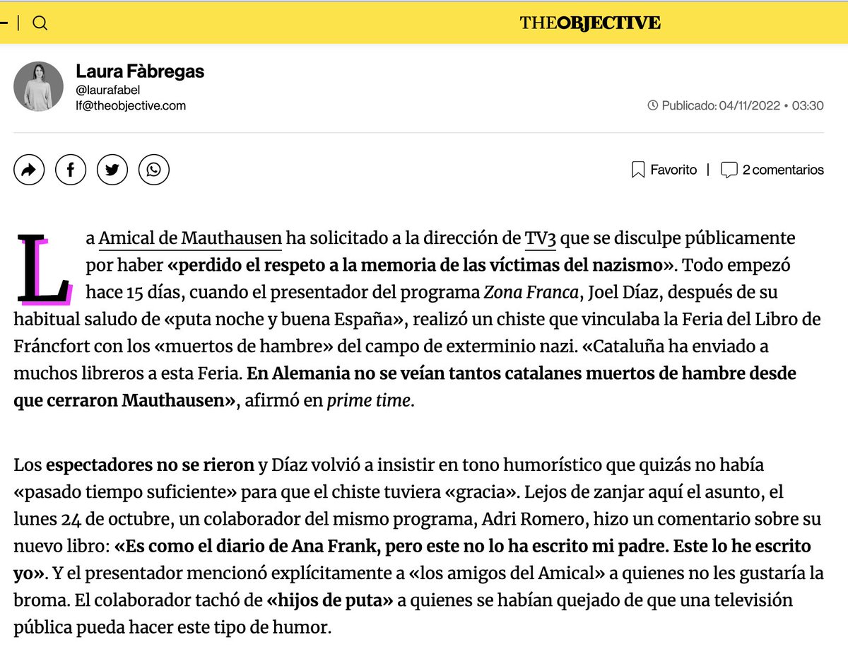 ¿Sois conscientes de que ese programa lo lleva un ultra que insulta sistemáticamente no solo a los españoles sino a gitanos o víctimas del holocausto @Heineken_ESCorp@CervezaElAguila? (CC @laurafabel)