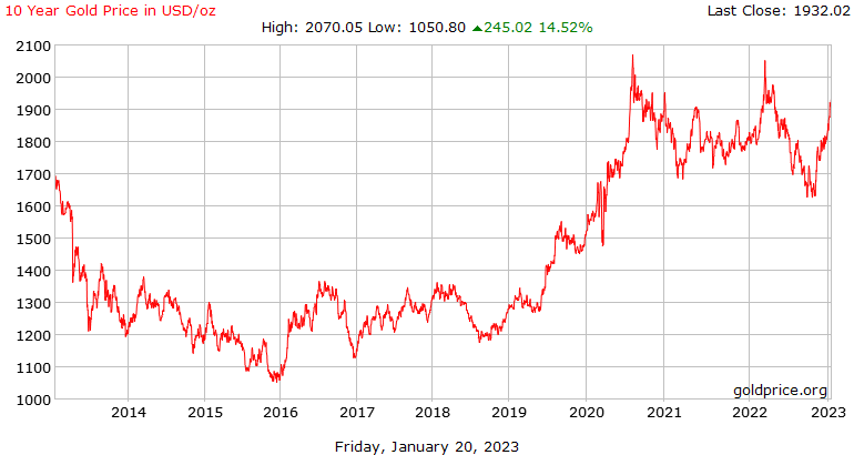 Por ejemplo, el oro es un activo y/o mineral escaso, y muy probablemente en los próximos 10 años su rendimiento esté por encima de la inflación considerando que su precio ha estado oscilando entre los $1500 y $2000 en los últimos 3 años.