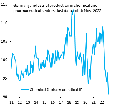 5. German industry is undergoing a massive shift and retooling. Whole sectors of production have become unprofitable and certain product lines have been shut down, never to reopen. Chemicals and pharmaceuticals are the prime example. Output is down -15% from a year ago...