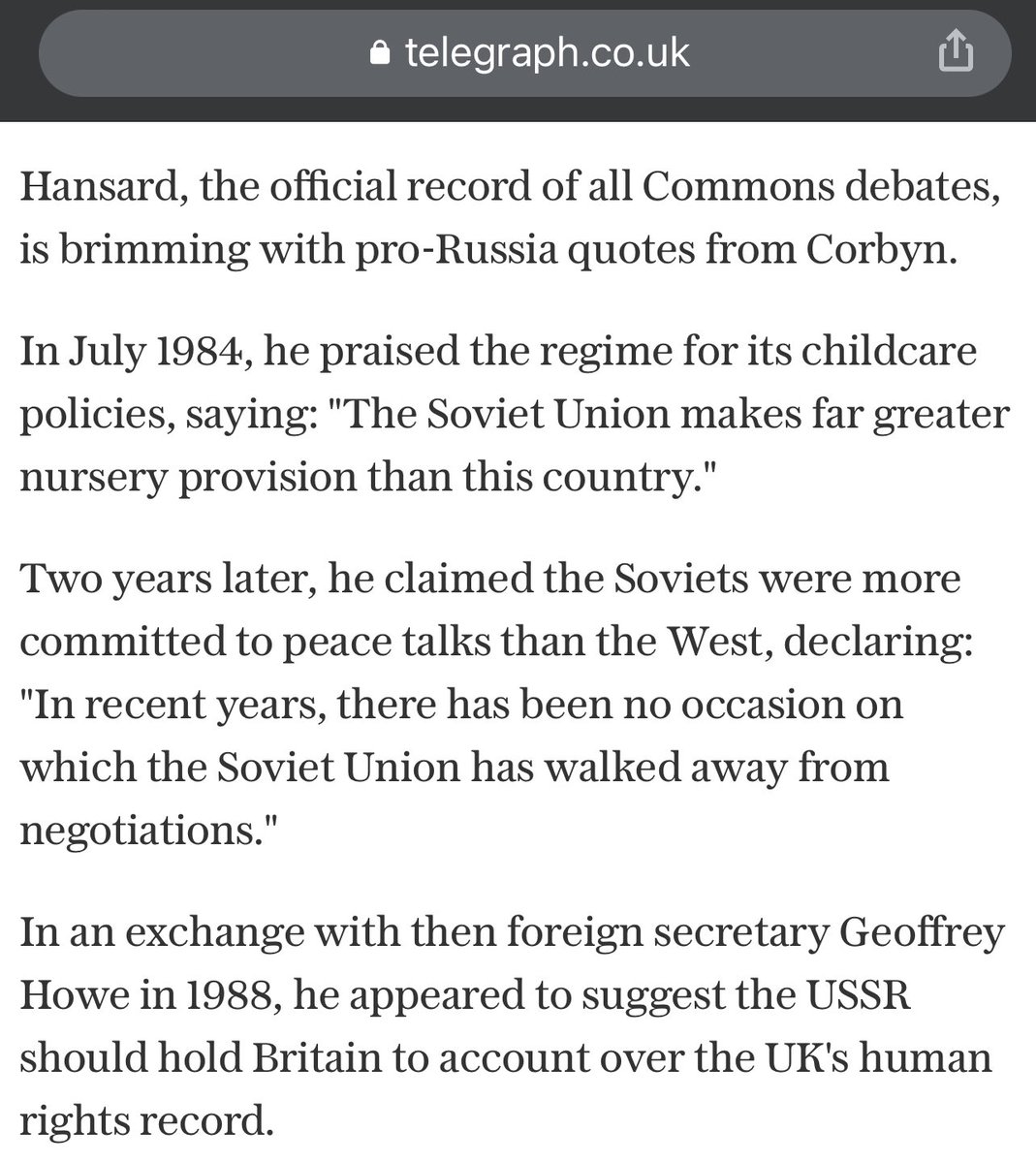 Corbyn was elected as a British MP in 1983 - with extremely fringe far left views within his Labour party. He opposed NATO, European integration, & the UK’s nuclear deterrent - while regularly praising the Soviet Union.