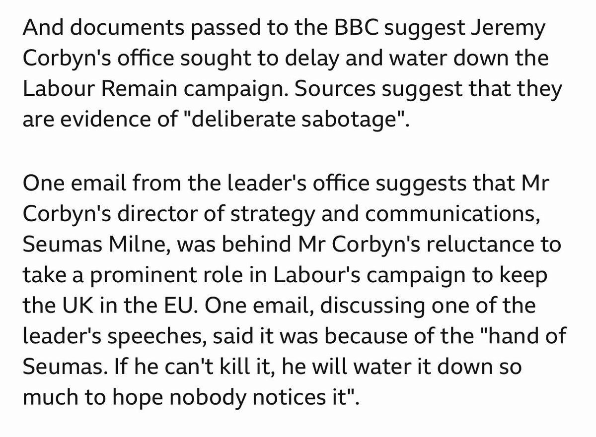 They’re actually referring to an anonymous internal party report by Corbyn supporters that was rejected as a poorly argued attempt to shield Corbyn. amp.theguardian.com/politics/2020/…