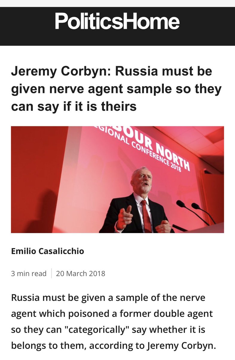 But Corbyn shocked his party & the country by demanding the nerve agent sample be sent to Russia so they could check if it was theirs.