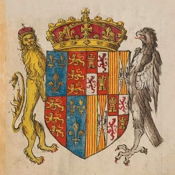 Un paréntesis para decir que el Águila de San Juan se incorpora al escudo real inglés como tenante principal con el reina de María I y Felipe II, como lo hizo antes como tenante secundario con Catalina de Aragón. También como caballero de la orden de Jarretera Felipe II la usa.⏬