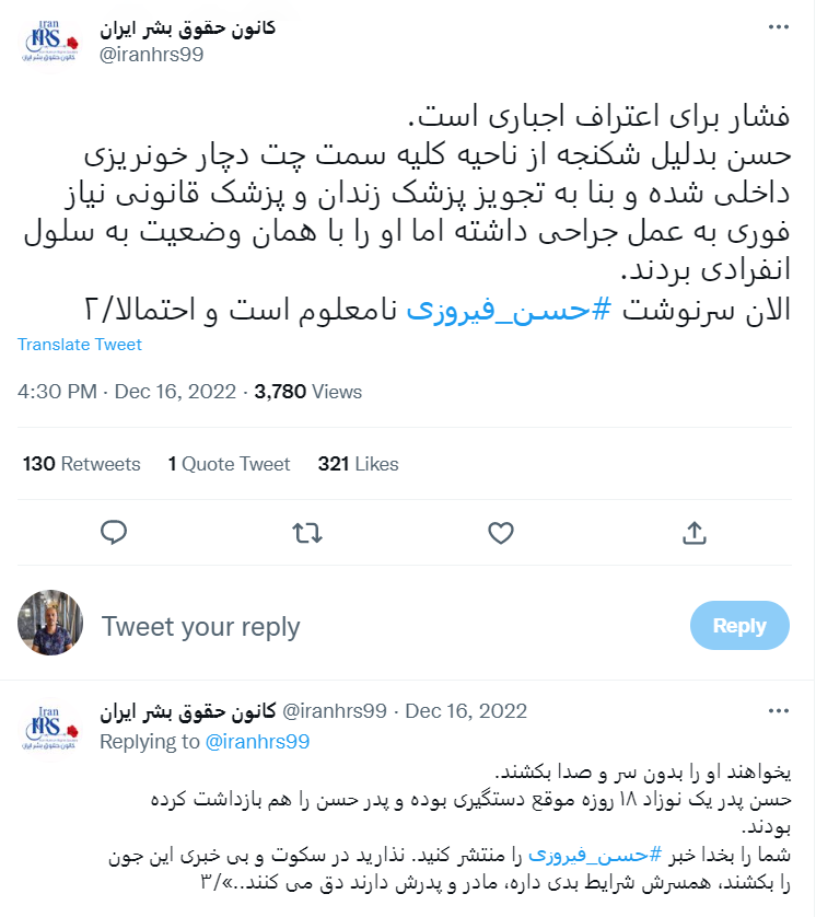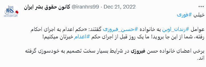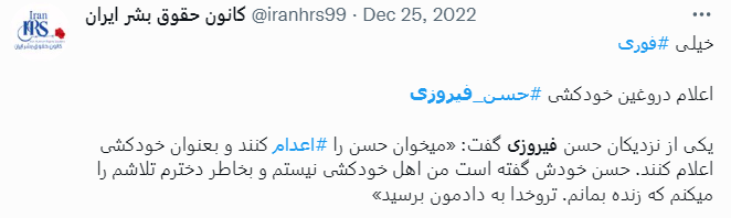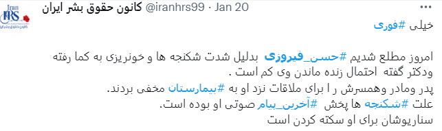 اولین بار ۱۷ آذر اکانت کانون حقوق بشر ایران ادعا کرد «حسن فیروزی ۵ آبان بازداشت شده…» کدام زندان؟ کدام بند؟ کدام دادگاه؟ چه شعبهای؟