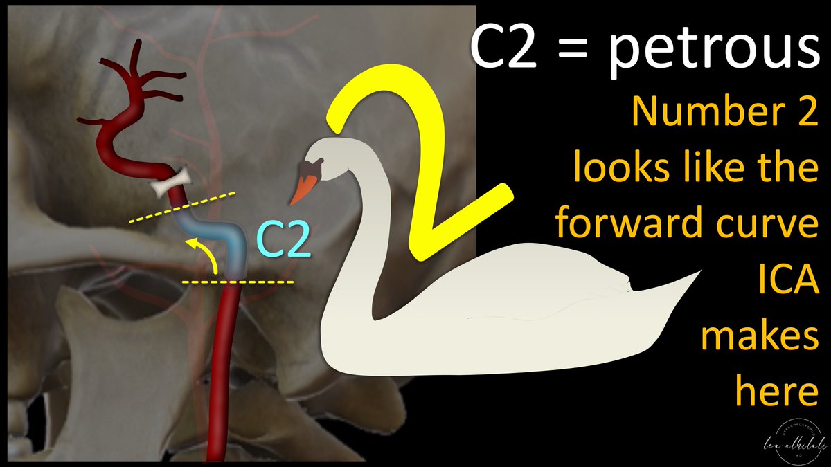 I remember this b/c the ICA makes a curve forward here, like a swan’s neck--and number 2 has a forward, swan like curve that looks just like the curve of the petrous segment