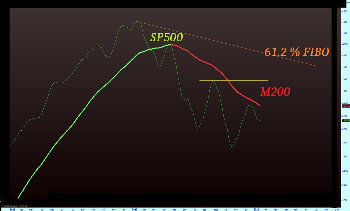Sí no hay elevación de M200 DIARIA, no hay trato. En esta tesitura no hay que mirar rupturas precios, directrices, resistencias o la misma media 200, sino elevaciones de medias para dar tiempo al mercado a no trampearte #SP500. 23/01/23