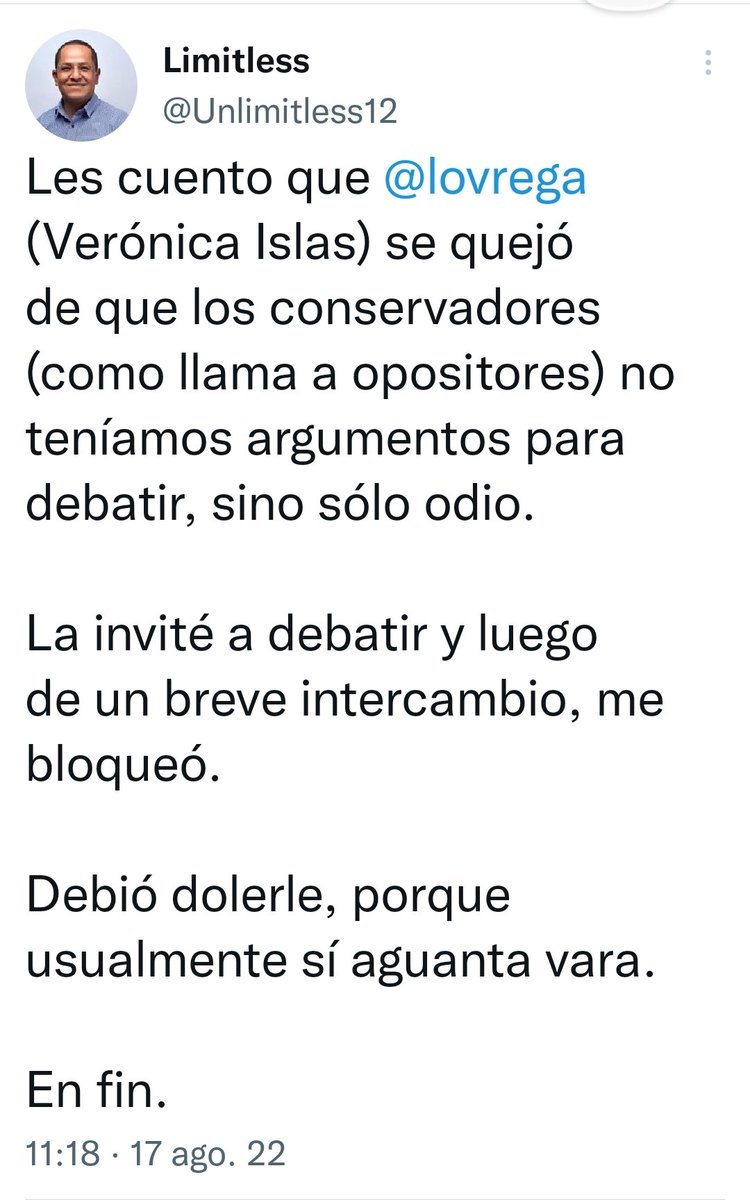 Así que de agosto que me bloqueó, hasta octubre del 22, no supe nada de ella.