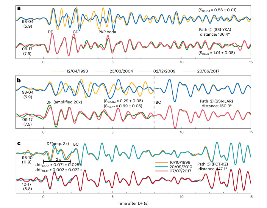 El conocimiento que tenemos de esta capa más interna del planeta viene precisamente de cómo se propagan las ondas sísmicas a través de él. Gracias a la sismología se demostró que el núcleo externo era fluido al no propagarse las ondas S (secundarias) ds.iris.edu/seismon/swaves…