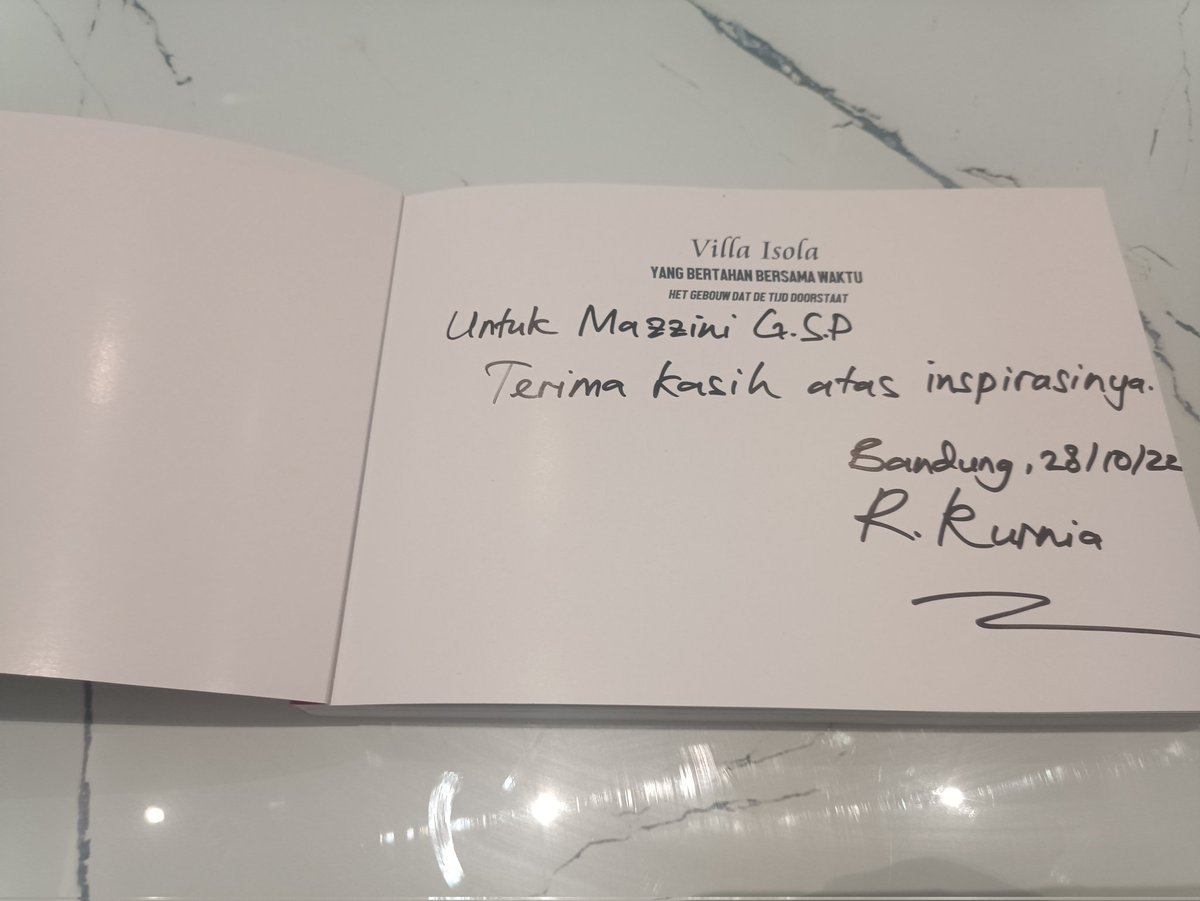 Suatu kehormatan dapat pemberian langsung dari karya Mas Kurnia @upi_lawas, sebuah buku yang membahas lebih dalam tentang Villa Isola.