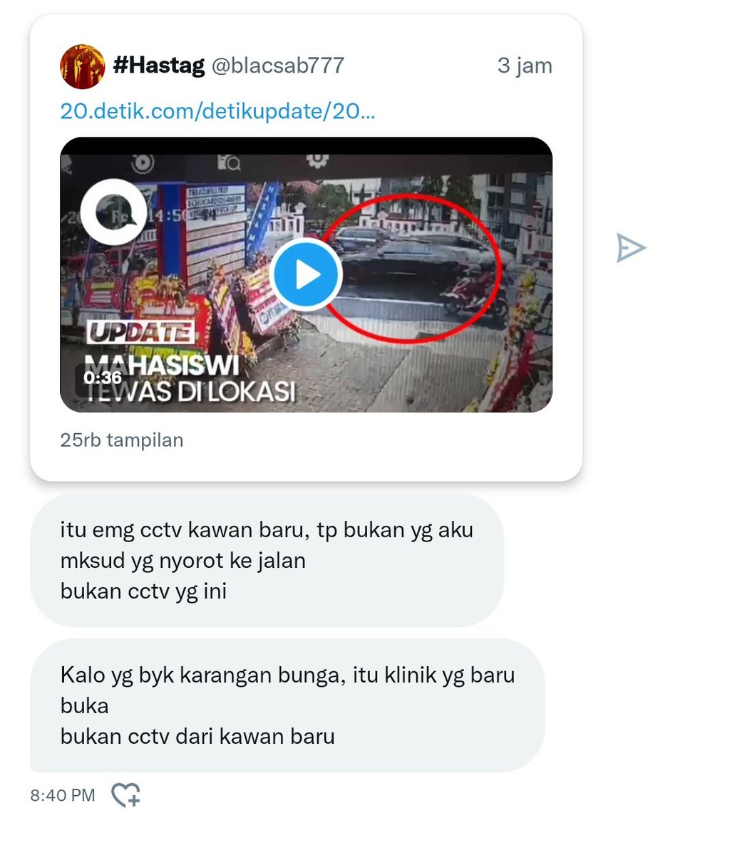 Izin tag juga Pak @ahriesonta agar disampaikan ke Pak Kapolri 🙏🏻 karena ada dugaan pengaburan titik terang. Ada baiknya CCTV di Kawan Baru dibuka aja.