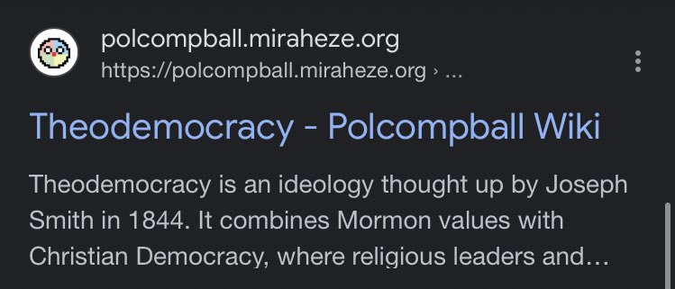 heres a weird lingering aspect of the internet that i really enjoy that ive never seen mentioned. occasionally i will google a niche ideological term. here, theodemocracy.
