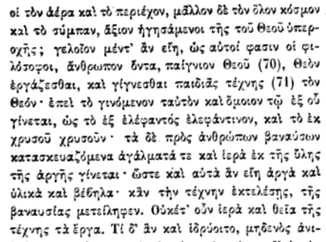 4. Ortlund quotes Clement, Strom. 7.5 (PG 8.436Bff.) saying that works of art "cannot be sacred and divine".
