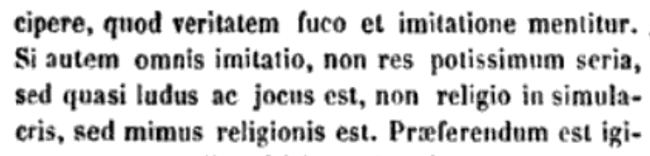 But, once again, this is a mistranslation. In fact, Lactantius says that "religion is not in simulacra" — i.e. not in statues or idols.