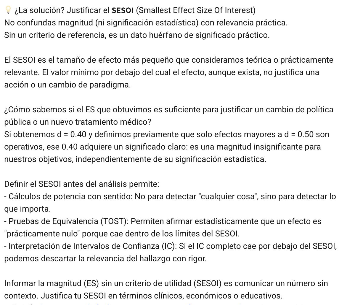 💡 ¿La solución? Justificar el 𝗦𝗘𝗦𝗢𝗜 (Smallest Effect Size Of Interest)