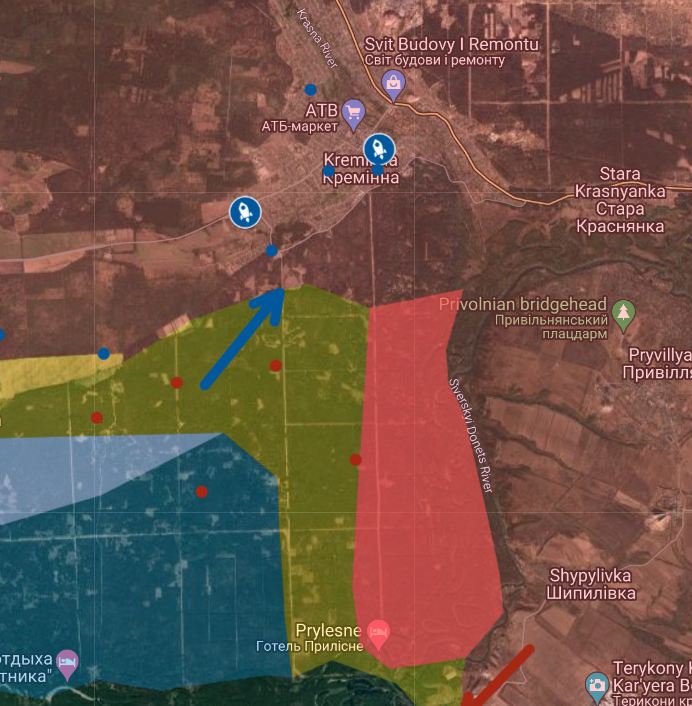 Russia expanded their area of control south of Kreminna.