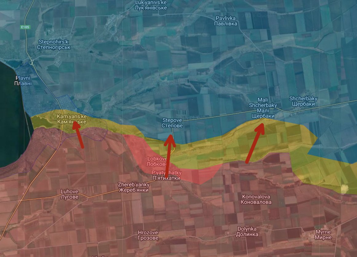 and Hulyaipole. They are also attacking the northern outskirts of Dorozhnyanka. The eastern outskirts of Charivne, the south of Bilohirya, the southern outskirts of Mali Shcherbaky and the southern outskirts of Stepove. Finally, Russia is sending recon into Kamyanska.