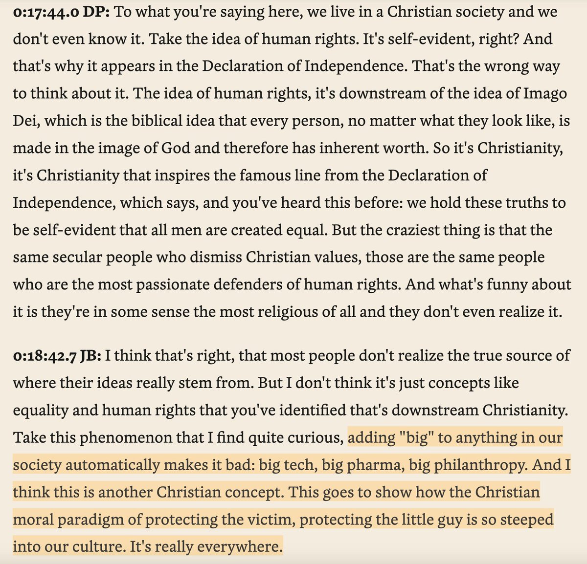 "adding 'big' to anything in our society automatically makes it bad: big tech, big pharma, big philanthropy. This goes to show how the Christian moral paradigm of protecting the victim, protecting the little guy is so steeped into our culture. It's really everywhere."