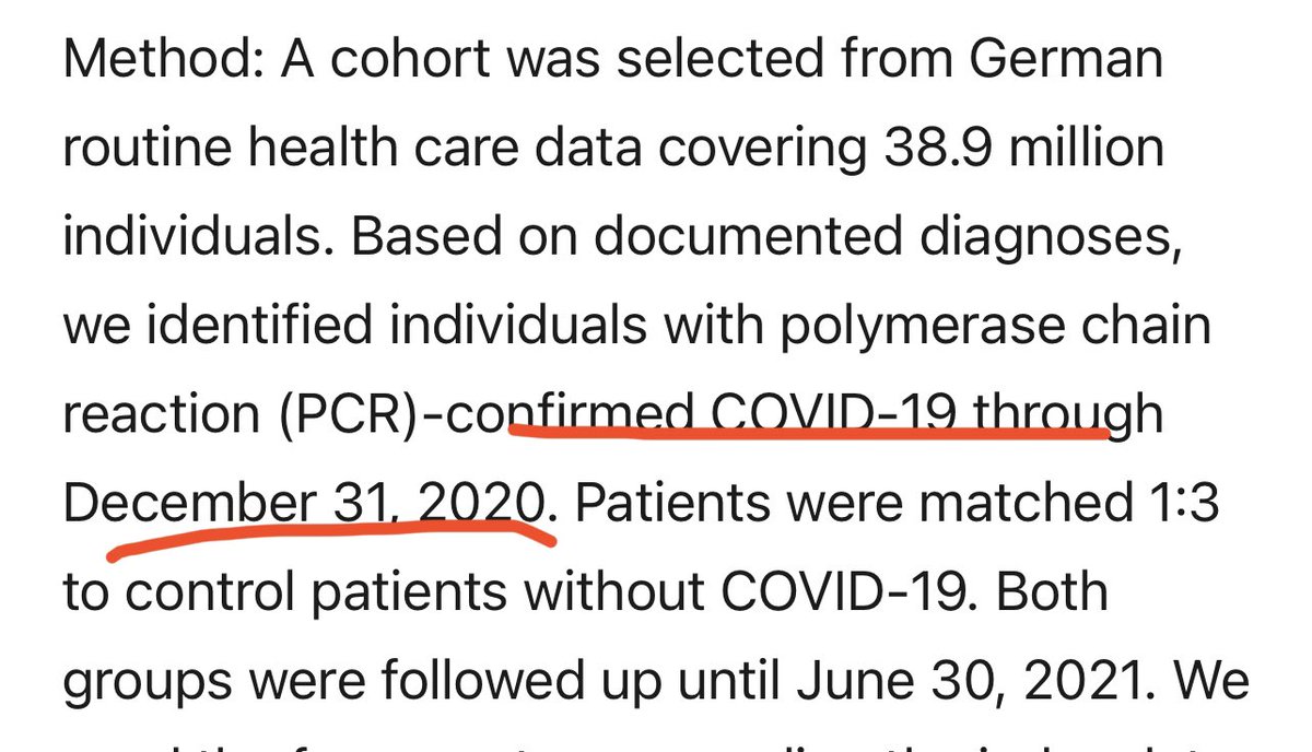 5) Also for the anti-vaxxers out there… the study was from early pandemic #COVID-infected folks before Dec 31 2020, and followup concluded by mid 2021 — vaccines were only available to non high risk people late in Q2 2021, so these long term findings are definitely NOT vaccine.