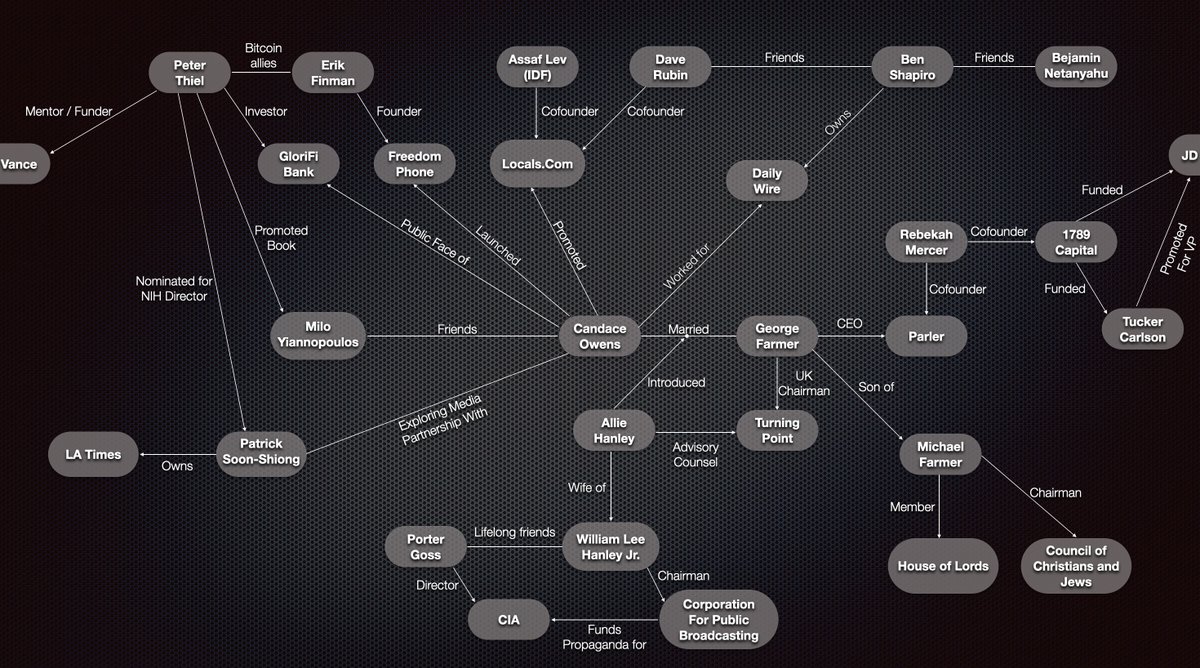 Earlier this year we reported that Candace Owens was introduced to her husband George Farmer by Allie Hanley, wife of William Lee Hanley Jr, who ran the CIA's media arm the Corporation for Public Broadcasting. Let's dig deeper! (1/x)