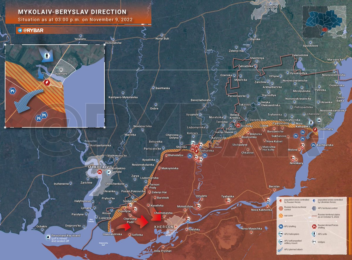 🇺🇦 armáda poškodila raketomety HIMARS mosty přes Dněpr a Rusové se tak musejí spoléhat na zásobování pomocí pontonových přívozů. Dlouhodobě neudržitelné.