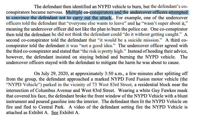 At the time of the arson the cop and other people in the group were trying to talk him out of it.