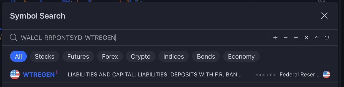 5/ TV gets the 3 series from FRED. Fed bal. sheet (WALCL) is updated weekly, TGA (WTREGEN) & RevRepo (RRPONTSYD) bal. are updated daily. From FRED, you get only weekly average of TGA. Thus NLQ series on TV is mostly weekly data and doesn’t move much on the daily.