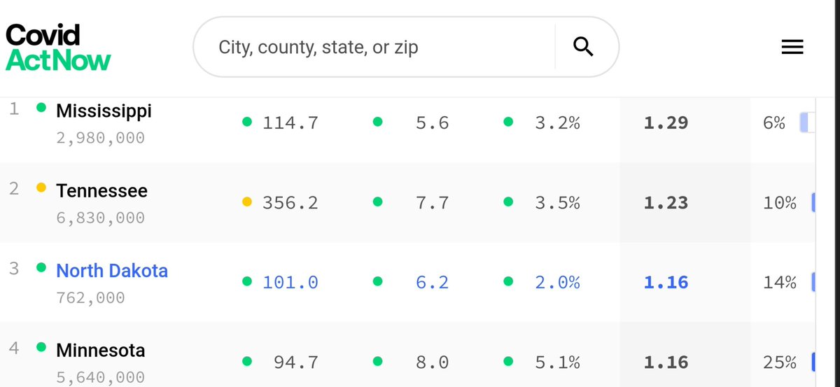 Mississippi, Tennessee, North Dakota, and Minnesota have the highest infection rates, according to COVIDActnow.org 3/