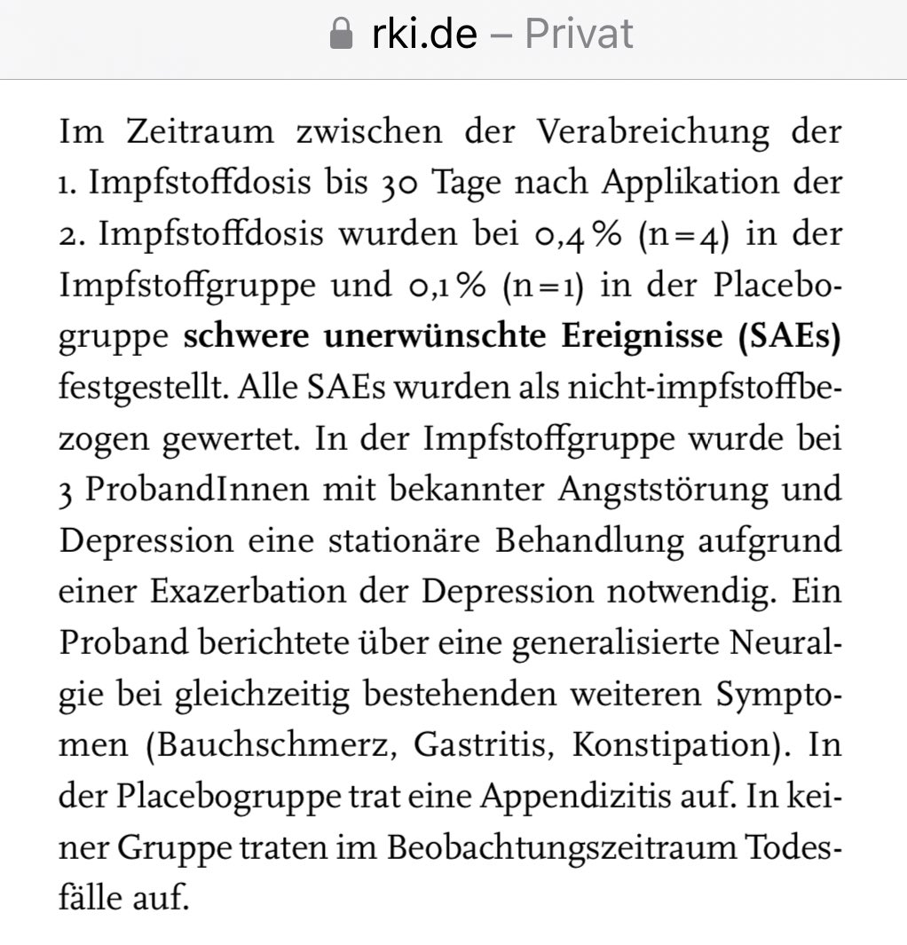 5/ … erweckt dies doch den Anschein, als gebe es keinen Unterschied, obwohl die Rate an SAEs in der Impfstoff-Gruppe doppelt so hoch ist wie in der Placebo-Gruppe.