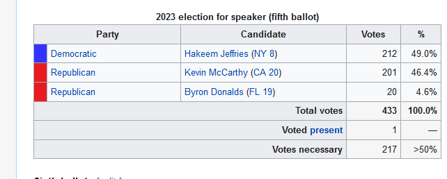 O quinto turno terminou assim. Todos democratas votam no seu (mas nao tem maioria). A briga interna dos republicanos tem propiciado turnos sucessivos nessa eleição. Algo que nao ocorria desde 1923. O impasse parece, segundo a cnn insolúvel. Alguém tem q ceder.