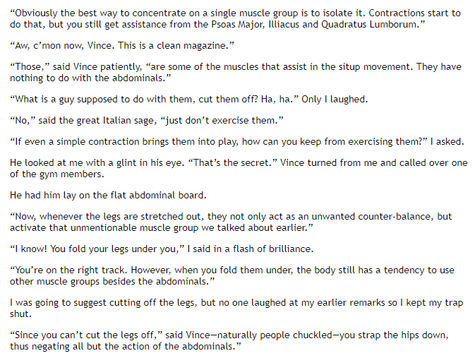 If you've been following my Gironda threads, you'll know Vince had strong opinions on every single popular exercise, from the bench press to the barbell back squat. That included sit ups, which he hated. His alternative? The frog crunch. 👇