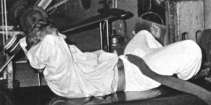 To isolate the abdominals fully, Vince would fold the legs back and under themselves - sometimes even strapping his legs to the bench - and then perform short crunches with a tight isometric at the top.