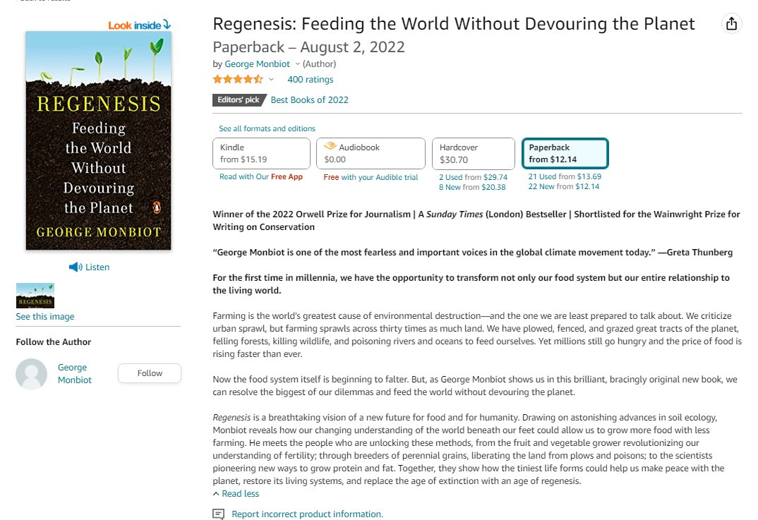 Since August, my new book The Eggs Benedict Option has outsold, often by a massive margin, Regenesis, the new book by globalist shill George Monbiot. Despite Amazon awarding his book an "Editor's Pick of 2022" badge, and despite it winning a variety of other meaningless awards...