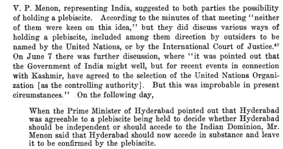 In June 1948, under Mountbatten's guidance, PM Nehru almost gave up Hyderabad by supporting Plebiscite to decide if it wanted to leave Bharat. VP Menon, representing India suggested it in UN. It was Sardar Patel's will which prevented Hyderabad from becoming another Pakistan.