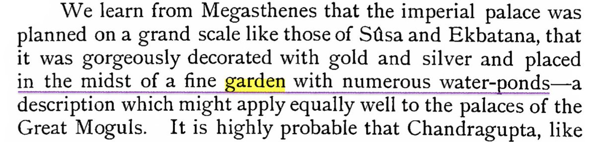 Ancient Hindu texts like Kautilya's Arthashastra (300 BCE) talk of gardens, lakes, tanks & fields. The Greek Ambassador Megasthenes (300 BCE) confirms this by describing how Hindu palaces he saw during the same era, were set in fine gardens decorated with numerous water ponds.