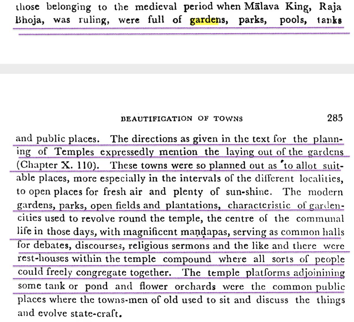Malva Raja Bhoja’s treatise Samaranga Sutradhara (11th c.) provides incredible details on design of gardens for temples, towns, palaces & garden-cities. Temple gardens were for public community events & included groves of sacred trees such as Bilva, Asvattha, Neem, etc.
