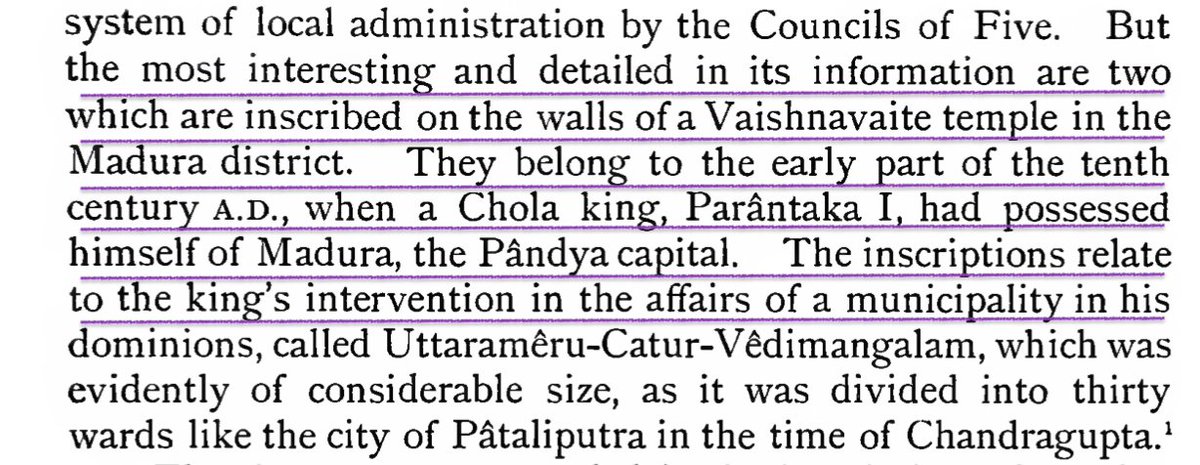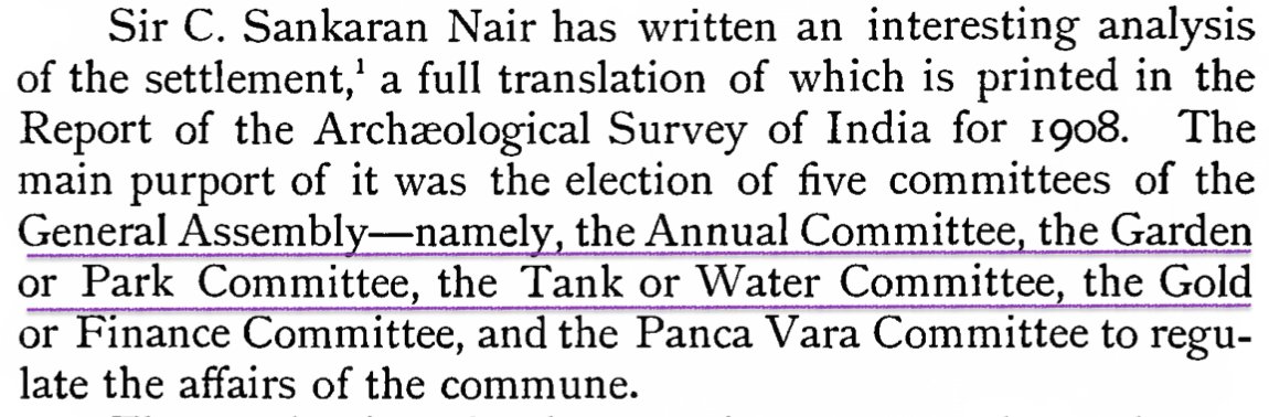 Supporting archaeological evidence from South India is found in inscriptions describing the intervention of Chola king, Parāntaka I of Madura (10th c.) who settled a municipal dispute by electing 5 committees including a Garden or Park Committee & the Water tank committee.