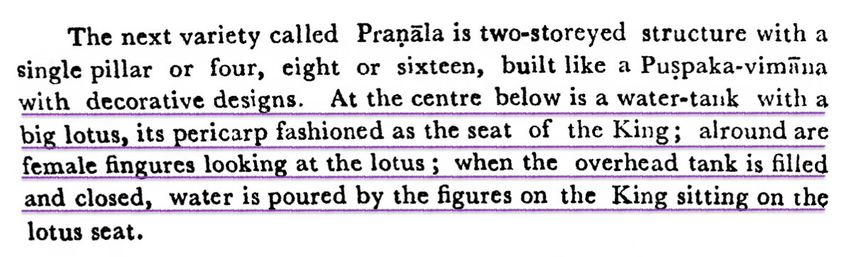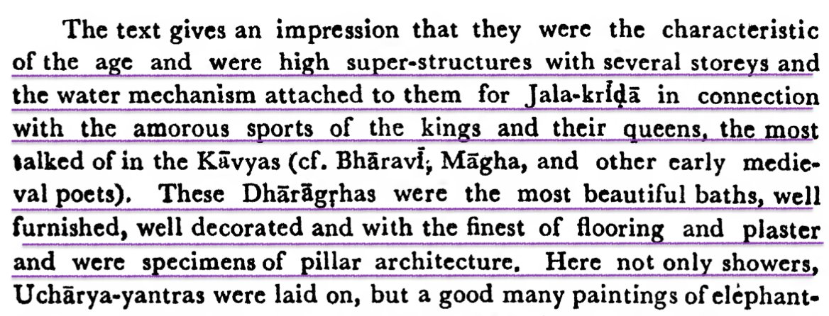 Raja Bhoja describes Dhārāgrha - a shower garden supplied by water pipes with many types of fountains. Water mechanisms were used for Jala krīdā using jets, sculptures that poured water & tanks built for royal entertainment, something that Babar could not even dream of.