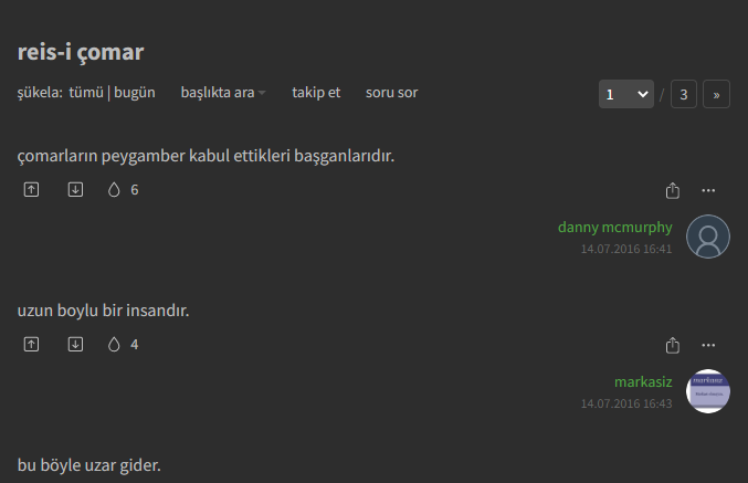 Hatta dahası Cumhurbaşkanı Erdoğan'a çomar şeklinde açılan başlık ve içerisindeki entryler de şikayetlere rağmen silinmedi. 2016 yılından beri cumhurbaşkanına çomar diyen başlığı hakaret olarak kabul etmiyorlar.