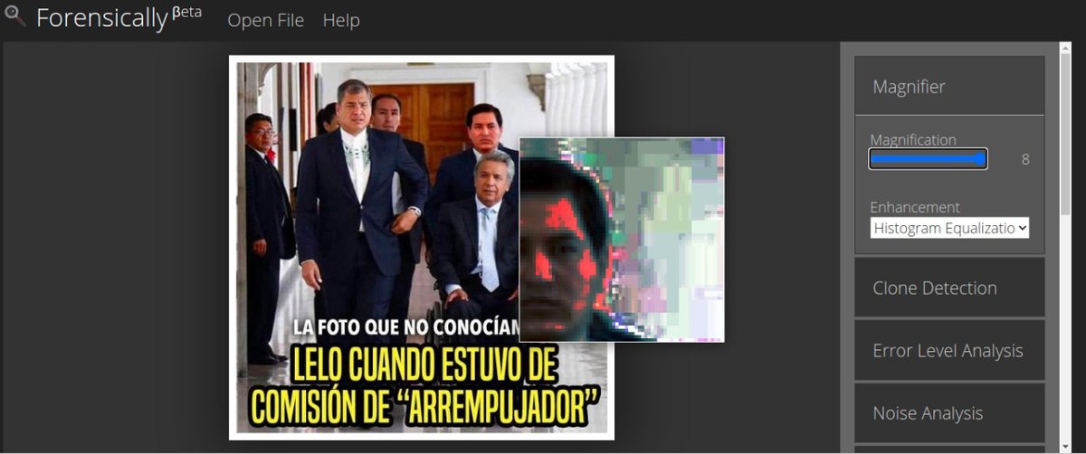 Me pasaron este meme que a primera vista se ve raro y parece un fake. Vamos a usar las herramientas de análisis forense para probar que la cara de @ecuarauz está montada sobre la de alguien más y que corresponde a desinformación.